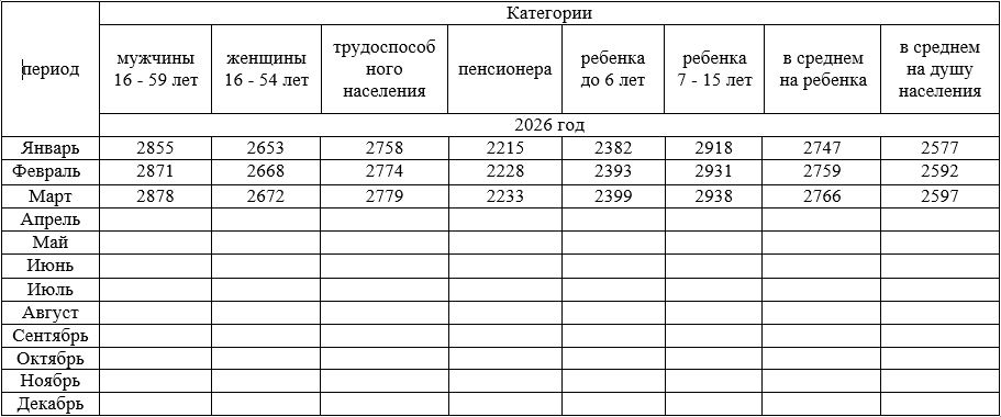 Величина прожиточного минимума населения ПМР в 2026 году